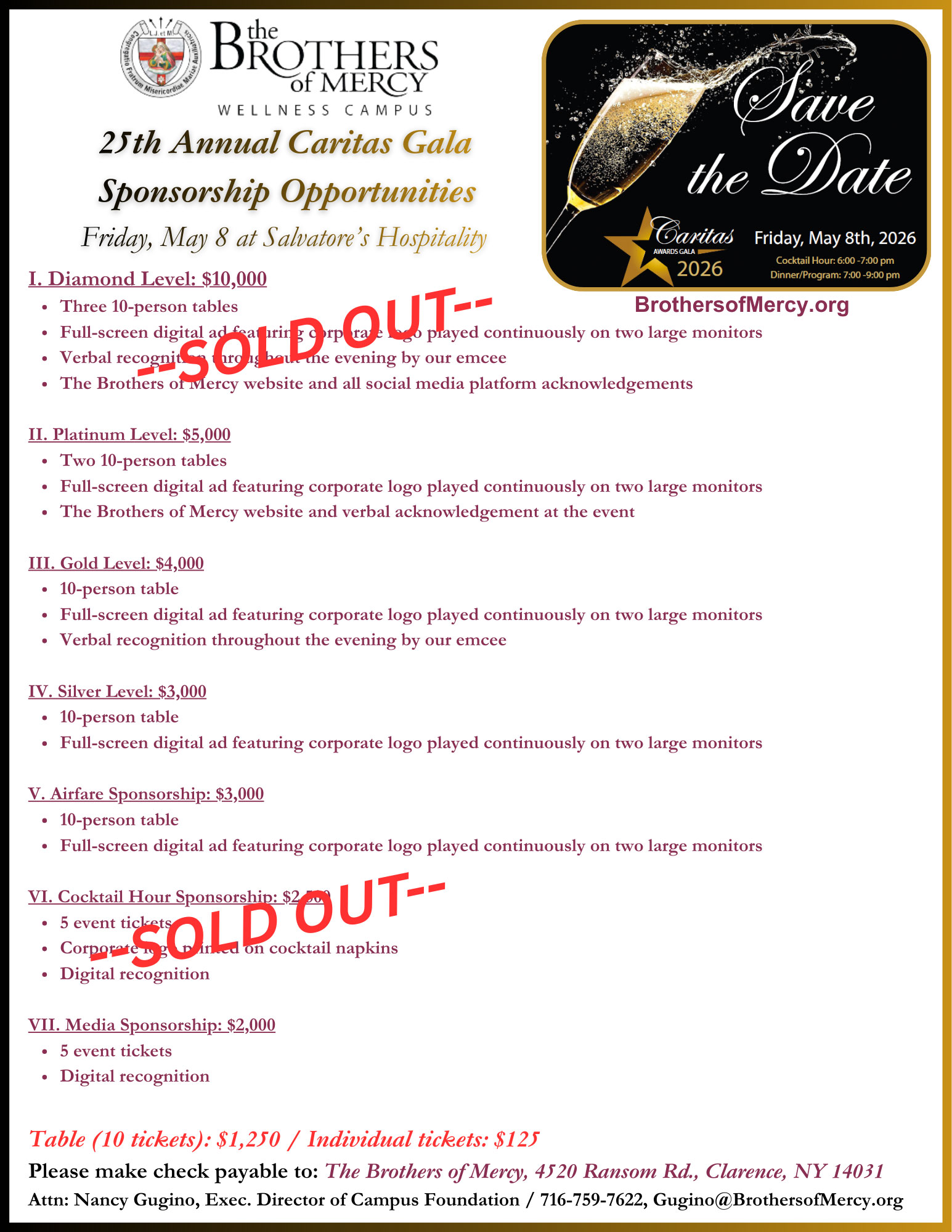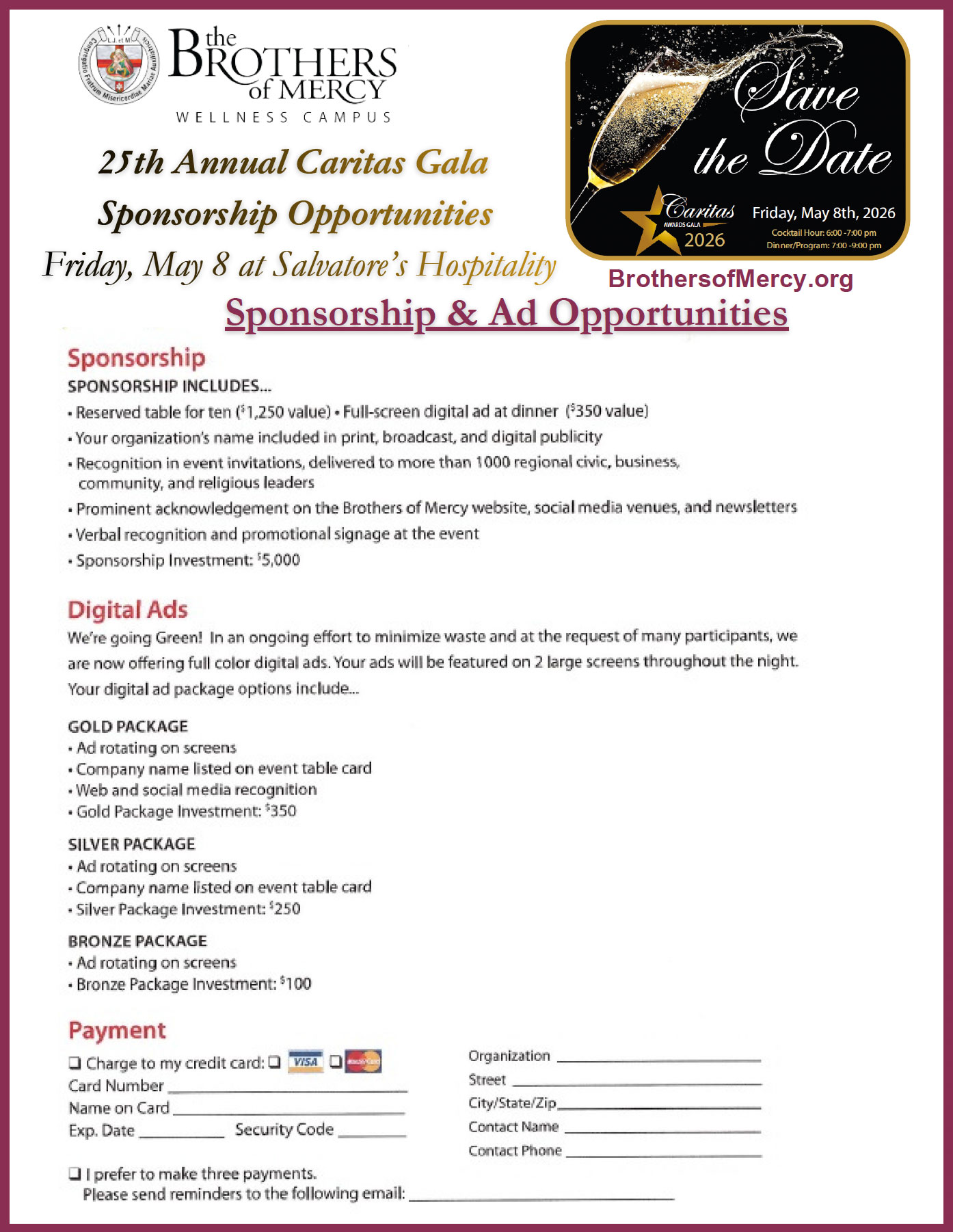 The Brothers of Mercy Foundation will host its 25th Anniversary Caritas Awards on Friday, May 8, at Salvatore’s. This signature event celebrates community leadership and charitable service while raising essential support for residents and patients served by The Brothers of Mercy.